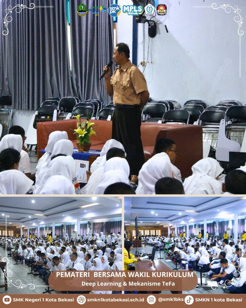 Dimulai pada hari pertama MPLS, Senin 14 Juli 2025, dibuka dengan apel pembukaan yang penuh khidmat. Sambutan dari kepala sekolah SMK Negeri 1 Kota Bekasi, yaitu Bapak Drs. Boan M.Pd serta para panitia guru maupun OSIS, telah berhasil menyuntikkan motivasi agar siswa baru dapat mengawali masa pembelajaran dengan semangat dan disiplin. Setelah sambutan dari kepala sekolah SMK Negeri 1 Kota Bekasi, kegiatan dilanjutkan dengan pengenalan guru, materi budaya sekolah (Wiyata Mandala & Panca Waluya), serta pengenalan konsep Teaching Factory atau yang lebih dikenal sebagai TeFa. Konsep TeFa, menjadi ciri khas pembelajaran berbasis industri di SMK Negeri 1 Kota Bekasi.